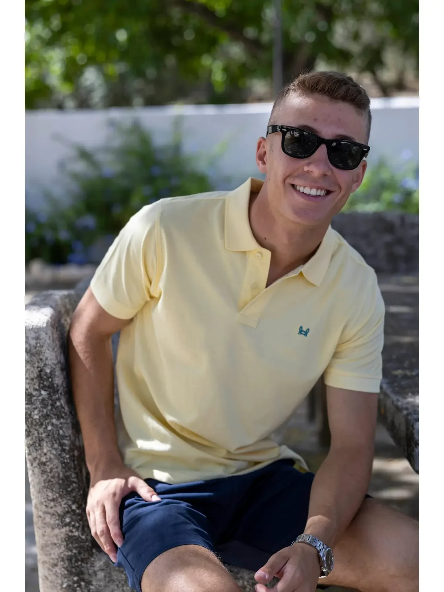 • Effen poloshirt in subtiele vanilletint, perfect voor een frisse, neutrale look