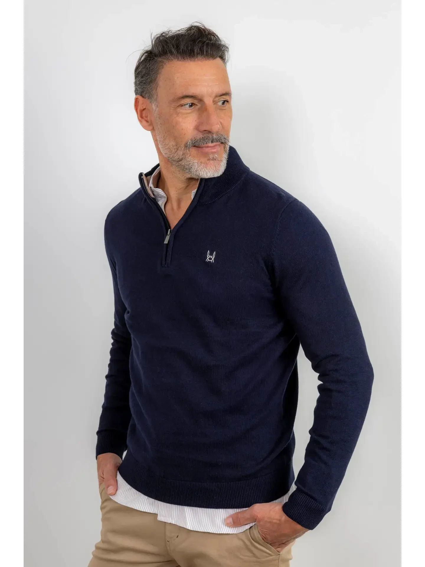 • Jersey met halve rits van vigore breisel, in marineblauw, gemaakt van 100% katoen.