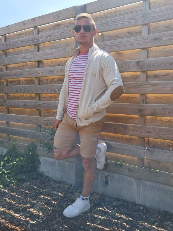 Model draagt shirt maat L, Cargo 32 en Jack XL