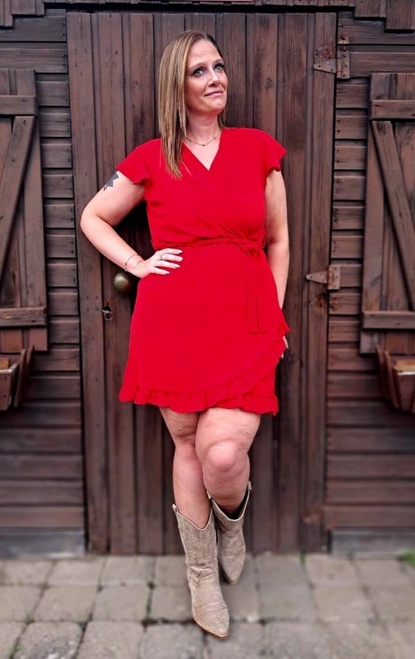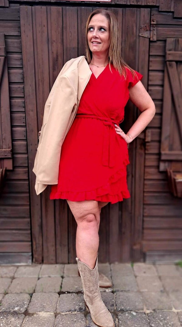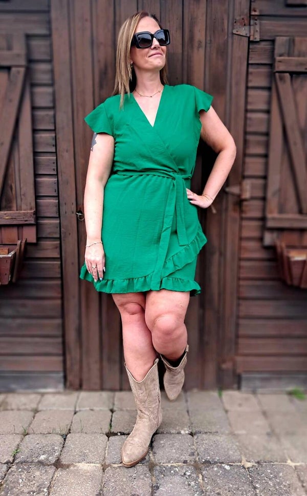 Effen korte jurk (Groen/Rood)