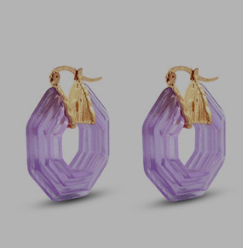 Trendy resin oorbellen hexagon gold purple
