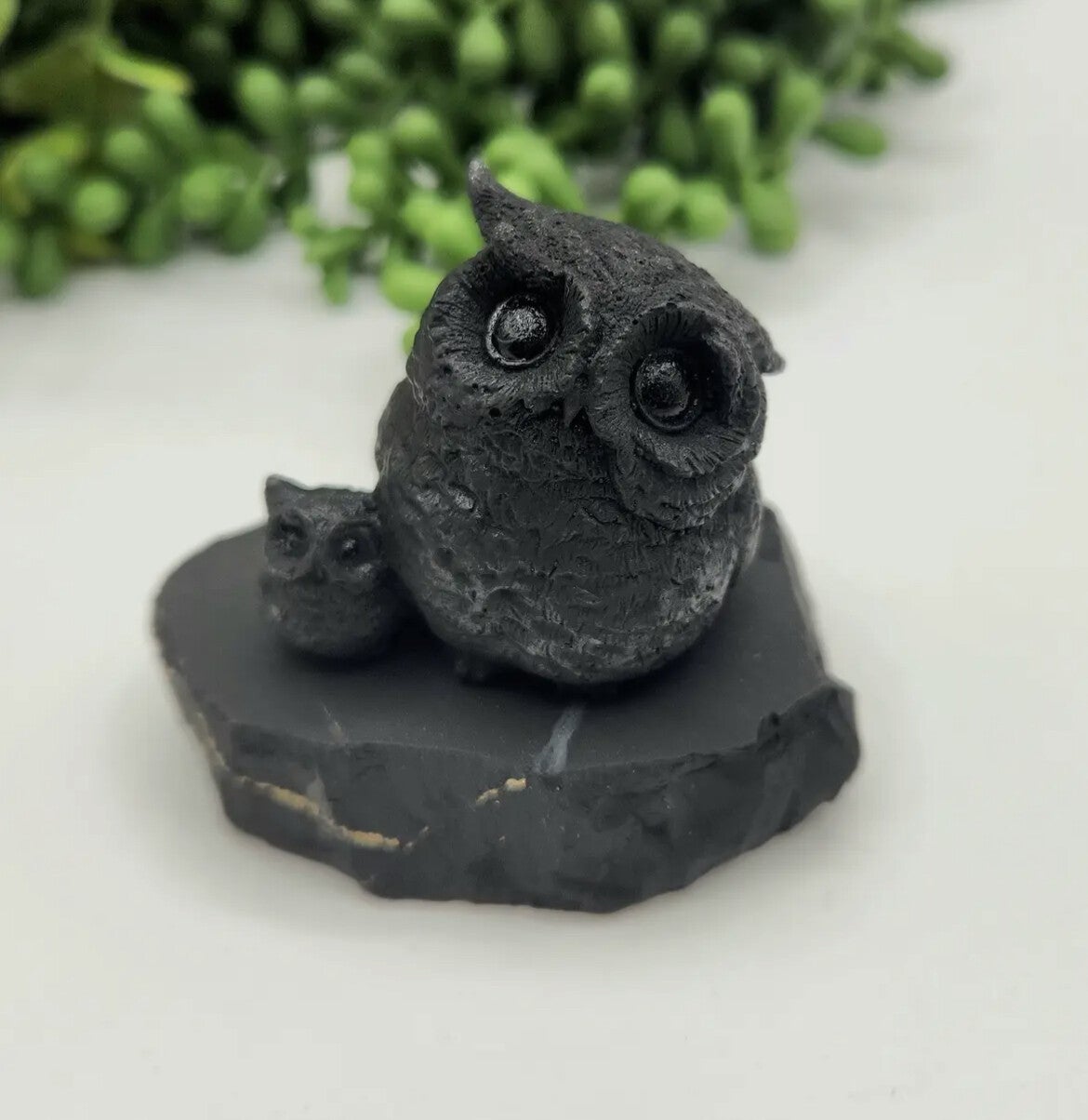 Shungite Beeldje – Uil met Klein Uiltje